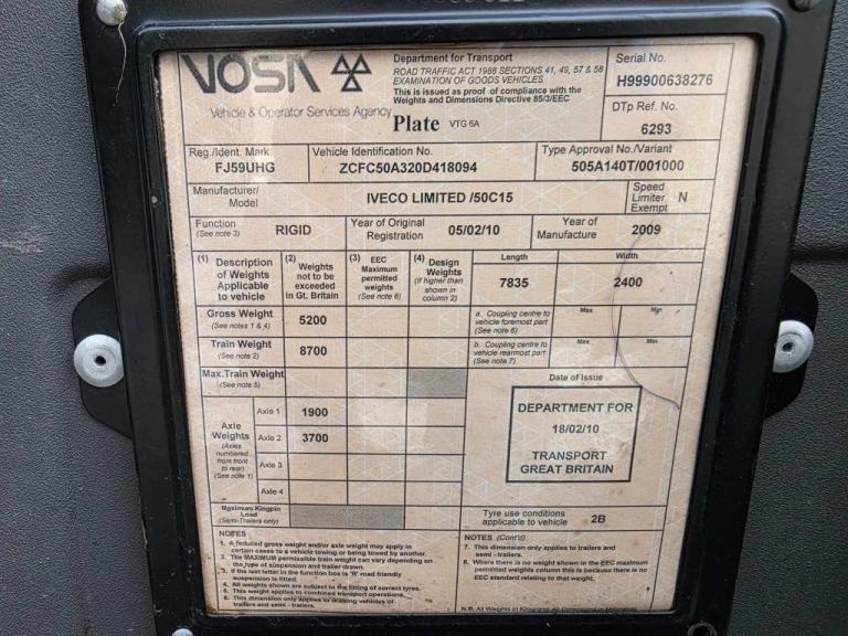 2010 Iveco Daily 50C15 Cherry Picker Sky Lift, Versalift Eurotel 38NF Gear, Jack Legs, 14.3 metre working height and 7 metres of outreach, ground and basket controls, 5200kg gross, manual gearbox, 3 seats, 85433kms, Tool Box and Hand Basin, MOT 13/05/2026