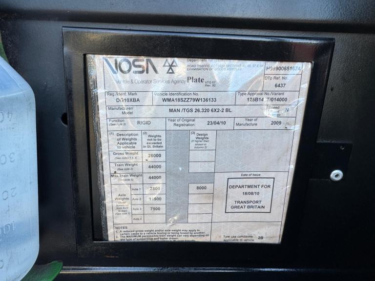 2010 MAN TGs 26 320 6X2 20,000 LITRE FUEL TANKER, REAR LIFT AND STEER, VBG DRAW BAR FOR TRAILER, ALUMINIUM TANK, TOP AND BOTTOM LOAD, ALFONS HAAR EQUIPMENT AND METER, PRINTER AND HOSE REEL, PRODUCT RETURN, ADR SPEC, REVERSING CAMERA, AUTO GEARBOX, DIFF LOCK, 426,000 KMS