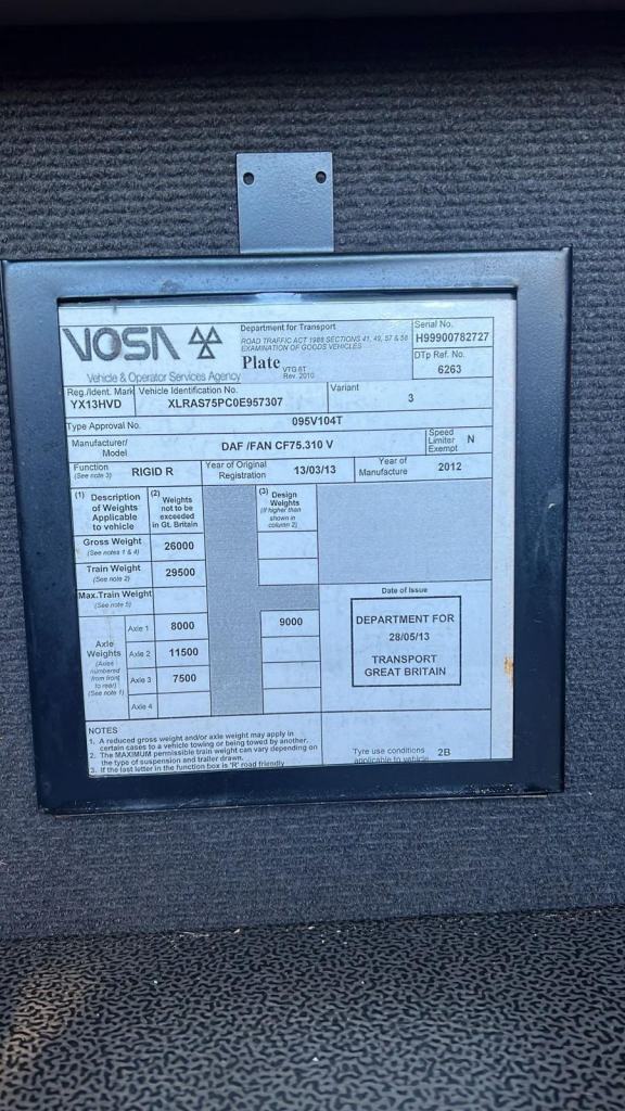 Posting for 11+ years2013 (13) DAF CF75.310 LIFT TAG AXLE CAR TRANSPORTER. AUTO. 26 TON GVW