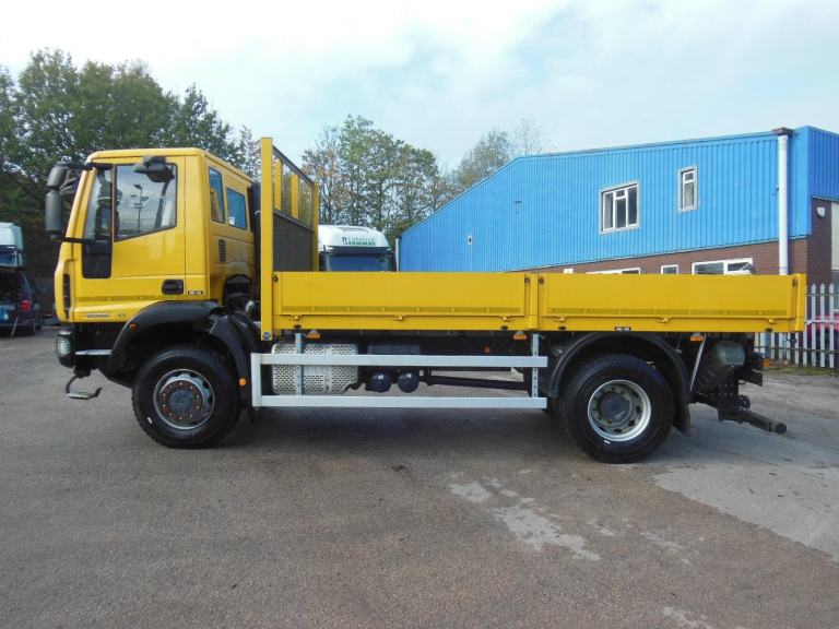 A pretty much as new Iveco 4x4 15000kg dropside, fitted with the 250hp Tector 6.7 litre 6 cylinder engine with a 6 speed manual gearbox - 5900km from new. Front & rear difflock's, cross-locks, low / high range gearbox, air conditioning, 3 seat cab (drivers seat air suspended) , steel front bumper with under run protection, steel rear bumper with hitch & electrics, heated mirrors, electric windows, even has the front towing pin, original tool kit and handbooks. Tyres are 99% good. November 2026 MOT and road registered with V5 Logbook. Condition is immaculate, as near as new as you can get for a 2015 truck. Ideal as an off road camper chassis, off road works vehicle or export - worldwide shipping arranged as required.