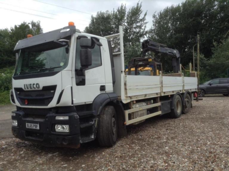 REF TG 3452 REG BL65PBF IVECO STRALIS 280 6X2 DAY CAB 300.000 KMS WARRANTED CAMERA SYSTEM AIR CON 26 TONNE GROSS REAR LIFT AND STEER AXLE FITTED WITH 24 FOOT LONG ALUMINIUM DROPSIDE BODY AND REAR MOUNTED HIAB XS 144 CRANE CRANE BRICK GRAB DUAL EXTENSION 2 HYDRAULIC LEGS RADIO REMOTE CONTROLL CAN BE SOLD SEPERATLEY VERY GOOD CONDITION ONE OWNER NO VAT IF GOING FOR EXPORT REF TG 3452