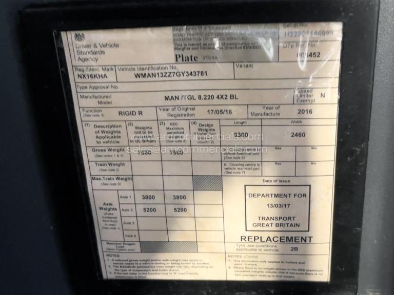 2016 (16) MAN TGL 8.220, 4X2 Curtainsider, Automatic Gearbox, Side Mounted Batteries, Air Horns, Sun Visor, Rear Barn Doors, Ad Blue, Single Bunk, Fridge, MAN Stereo, Sleeper Cab, Body Height (11FT3"), Interior Length (5.8M), Interior Height (2.2M), Interior Width (2.3M), Great Condition for the Year, MOT 31st August 2026, 763K KMS, Finance Available Subject to Status.