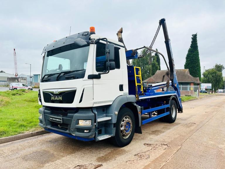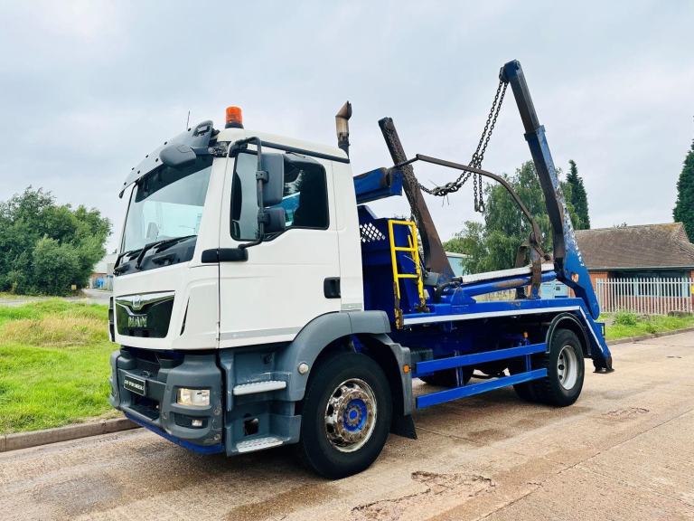 MAN TGM 18.250 2016 (66) EURO 6, 18 TON SKIP LOADER, HYVALIFT EXTENDABLE EQUIPMENT, HYVA SHEET, UPRIGHT EXHAUST, DAY CAB, 8 SPEED MANUAL GEARBOX, AIR CON, CD, CRUISE CONTROL, SWC, SUN VISOR, ELECTRIC WINDOWS, BEACONS, 259,000 MILES.