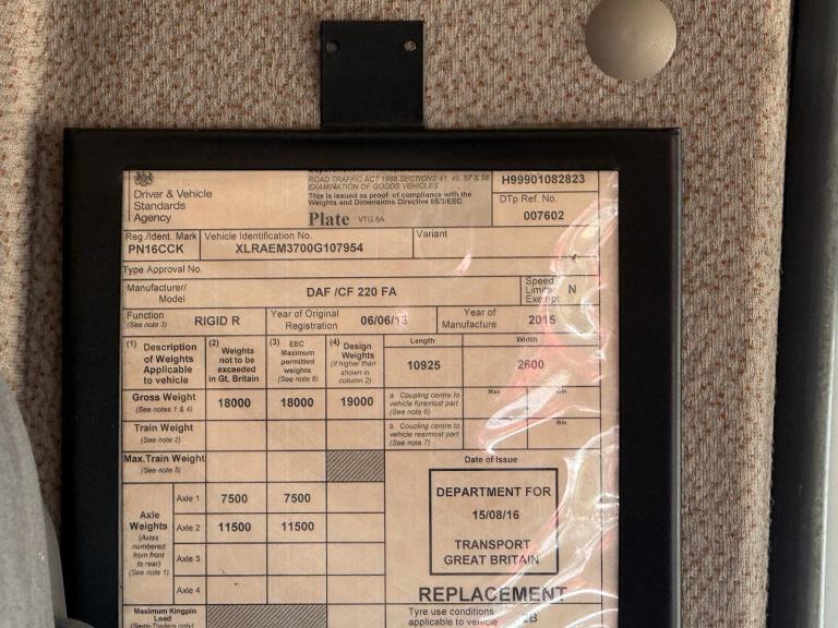 Posting for 14+ years2016 DAF CF 220 18 TON FRIDGE