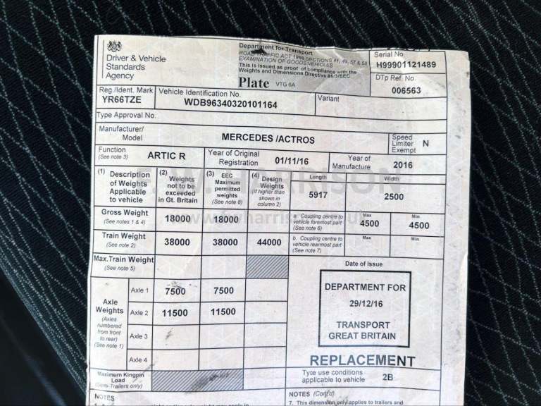 Posting for 14+ years2016 MERCEDES ACTROS 1840 4X2 EURO 6 TRACTOR UNIT