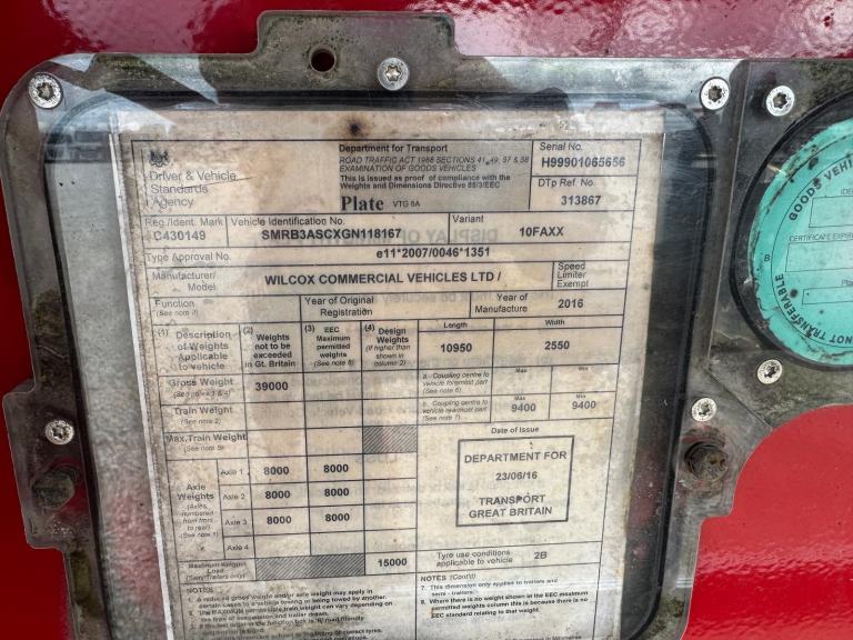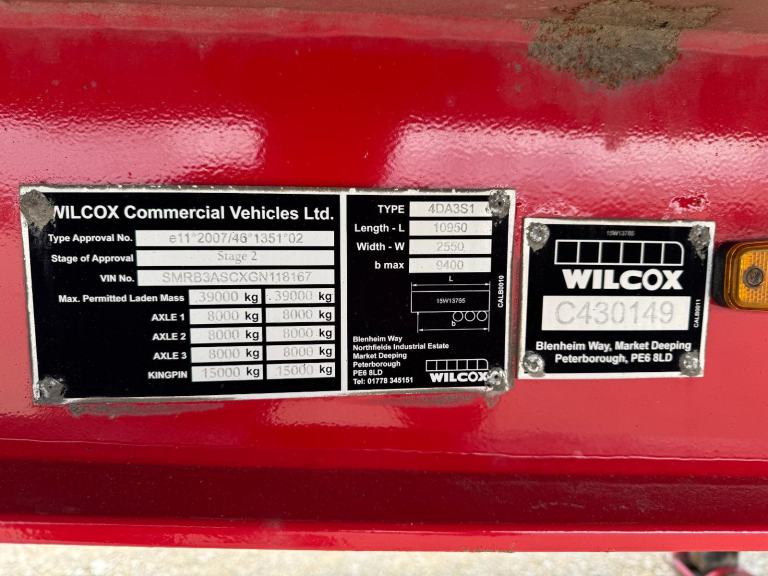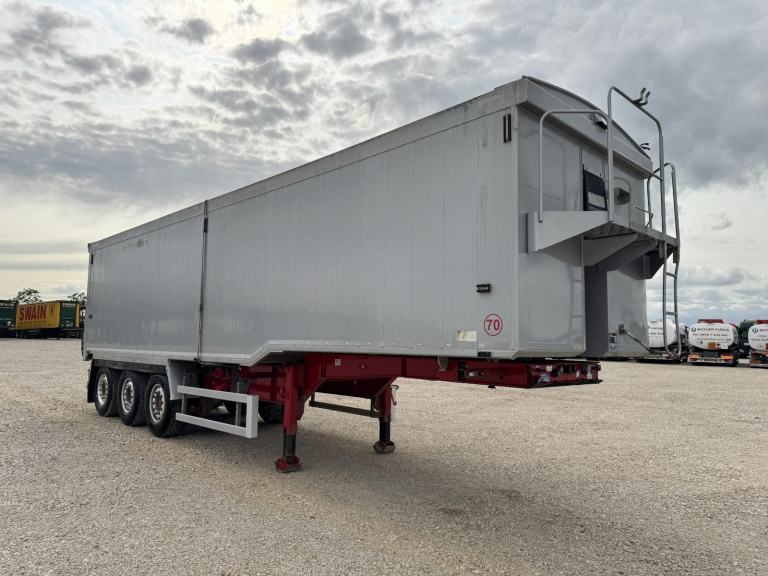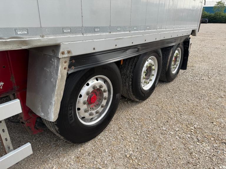 2016 WILCOX ALLOY BULK TRI AXLE TIPPING TRAILER, EASY SHEET, GRAIN HATCH, ALLOY WHEELS, MERCEDES AXLES, DISC BRAKES, GOOD FLOOR, FRONT LIFT AXLE, EDBRO TIPPING RAM