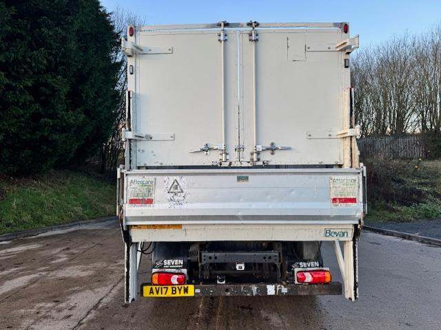 2017 17 DAF LF 150 EURO 6 14ft Bevan high sided tipper, side doors, barn doors, DEL 1000kg column tail-lift, tow bar electrics, side sensors, camera system, beacons, manual 6 speed, cruise, lane assist, central locking, air seat, 3 seats, air con, electric windows/mirrors, ex council, £12,950 + VAT