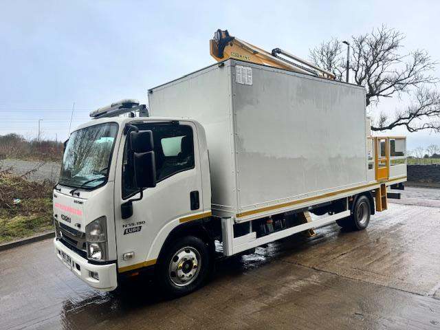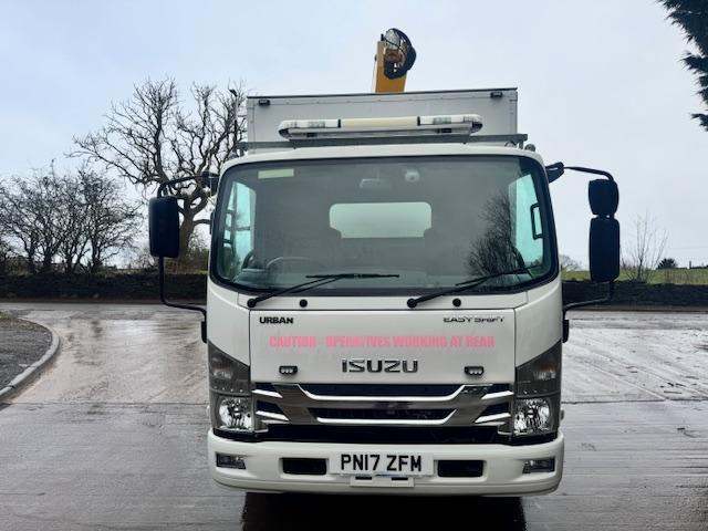 2017 17 ISUZU N75.150 URBAN Euro 6 19ft7 body with a 12ft5 work shop box, Sky King EV150 KITB access lift, 15m working height, work bench, hand wash, 240V invertor, work lights, LED beacons, cyclear sensor system, reverse camera, audible indication, Auto, lane assist, 3 seats, air con, electric windows, 19,973kms, £19,950 + vat