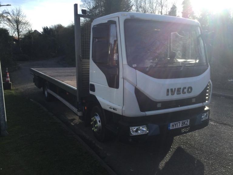 REF TG 3834 REG HY17BKZ IVECO EUROCARGO 75-160 EURO 6 4X2 DAY CAB 7.5 TONNE GROSS SPRING SUSPENSION DOUBLE PASSENGER SEAT FITTED WITH 22 FOOT LONG FLAT BED BODY ONE COMPANY OWNER VERY GOOD CONDITION NO VAT IF GOING FOR EXPORT REF TG 3834