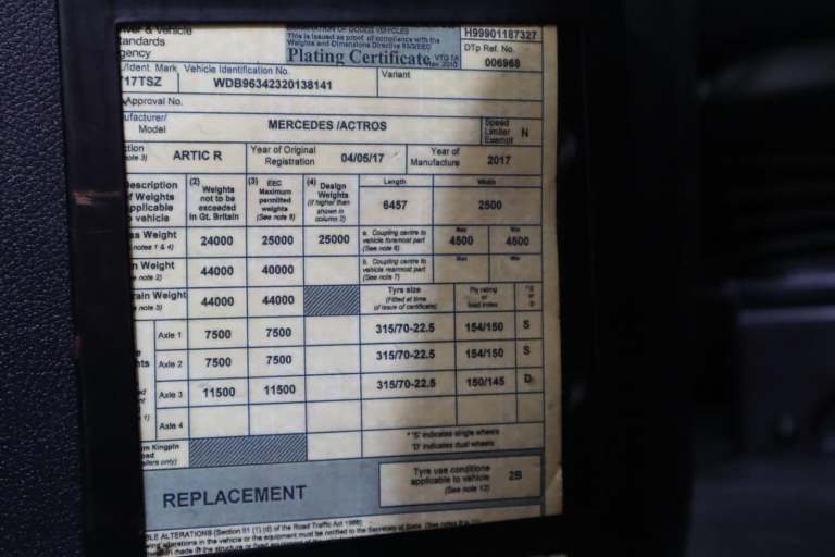 Posting for 1+ years2017 (17 PLATE) Mercedes Benz ACTROS 2545 6x2 Euro 6 Tractor Units