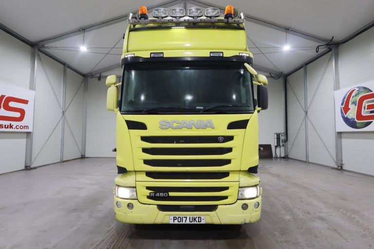 2017 (17 PLATE) SCANIA R450 6X2 EURO 6 TRACTOR UNIT, TOP SLEEPER, DOUBLE BUNK, MID LIFT, HYDRAULIC EQUIPMENT, CAMARA SYSTEM, FRIDGE, MICROWAVE, KELSA HIBAR LIGHT BAR, AMBER BEACONS, AFTERMARKET LIGHTS, A/C CLIMATE CONTROL, RADIO/STEREO, DIGITAL TACHOGRAPH, 2-PEDAL