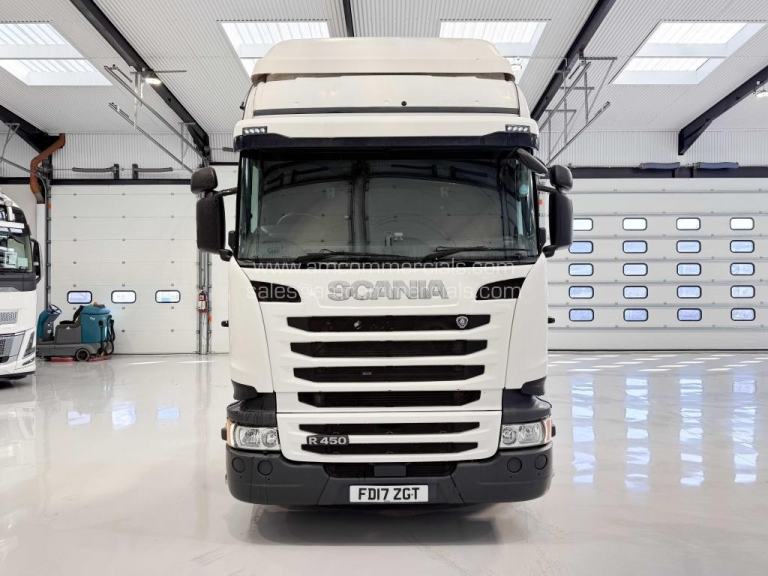 2017 (17) Scania R450 Highline. 6X2 Midlift, 2-Pedal Opticruise Gearbox, Fixed Fifth Wheel, Side-Mounted Batteries, 4M WB, 475L Fuel Capacity, Sun Visor, Walkovers, Twin Bunk, Stereo, 627k miles. Good Condition.