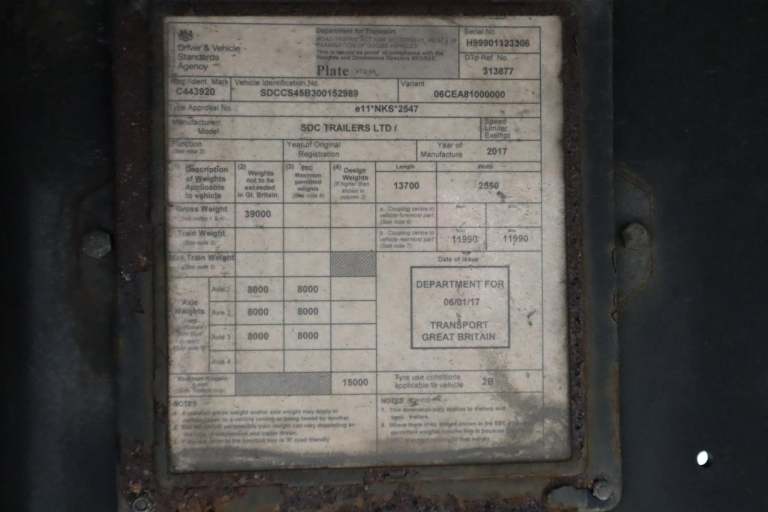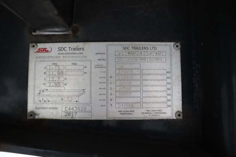 Posting for 1+ years2017 (43 PLATE) SDC Trailers 13.7M Curtain Sider 3-AXEL Trailers