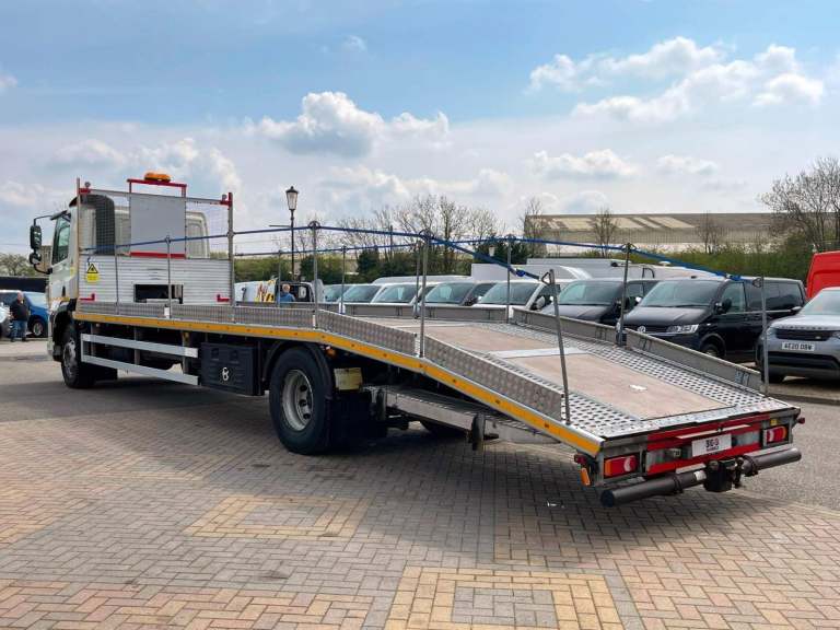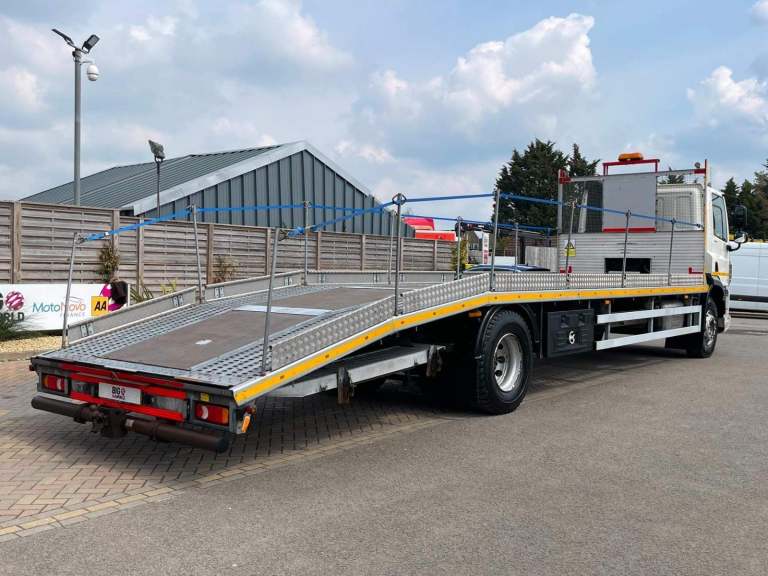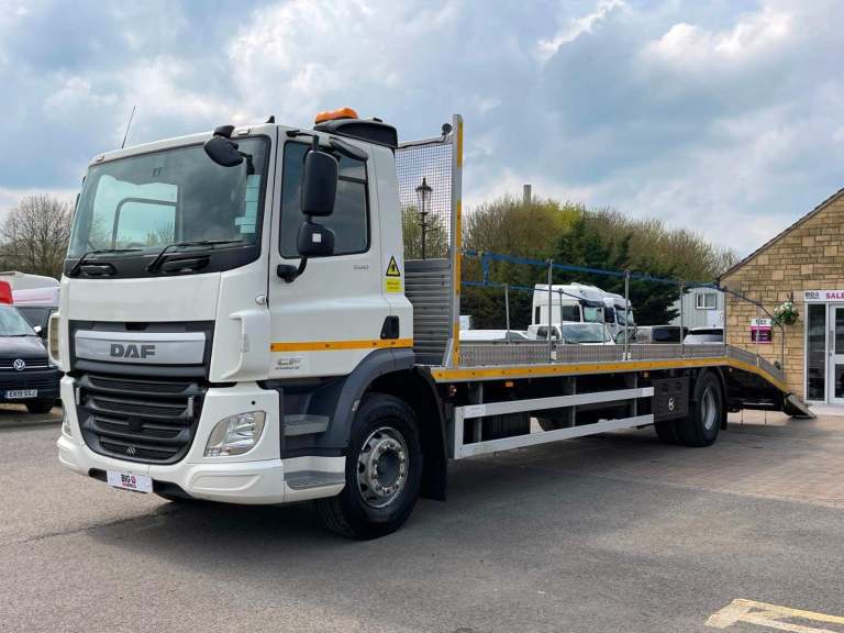 The DAF CF260 4x2 Day Cab 18-ton 32ft5 Alloy Beavertail is a versatile truck designed for efficient transportation of heavy machinery and equipment.