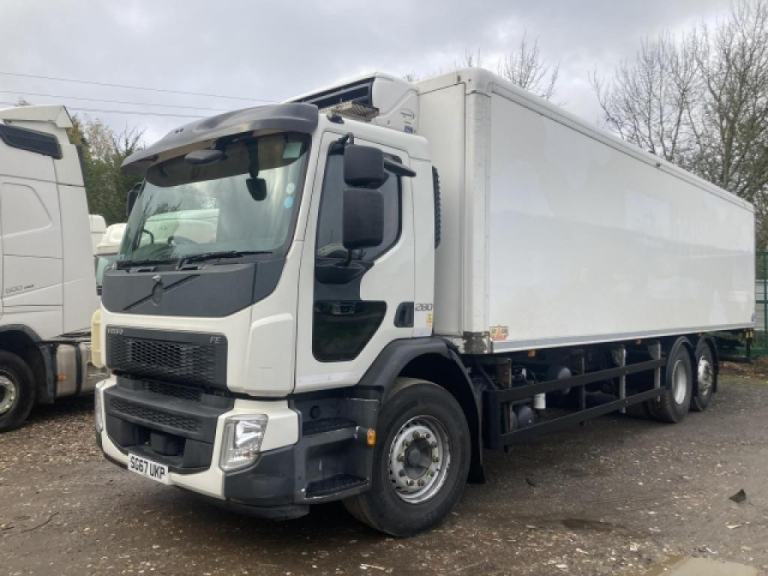 REF TG 3779 REG SG67UKP VOLVO FE 280 EURO 6 6X2 DAY CAB 400.000 KMS WARRANTED CAMERA SYSTEM AIR CON 26 TONNE GROSS REAR LIFT AXLE FITTED WITH 30 FOOT LONG GRAY AND ADAMS FRIDGE BODY CARRIER XARIOUS 600 FRIDGE MOTOR OVER NIGHT STAND BY COLUMN TAIL LIFT REAR ROLLER SHUTTER DOOR MARCH 2026 MOT VERY GOOD CONDITION ONE COMPANY OWNER NO VAT IF GOING FOR EXPORT REF TG 3779