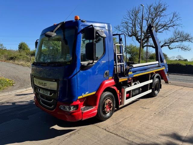 2018 18 DAF LF 180 EURO 6 12 Ton, Hyva extending arm skip loader, work lights, beacons, manual 6 speed, cruise, lane assist, diff lock, central locking, air seat, electric windows/mirrors, phone, 1 owner £19,950 + VAT (YK18 EBO)