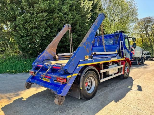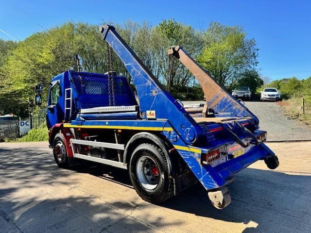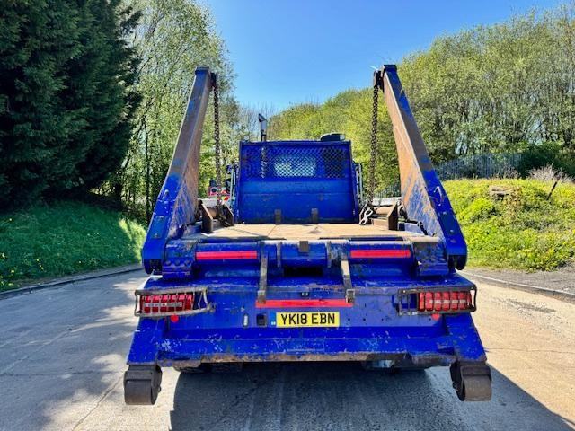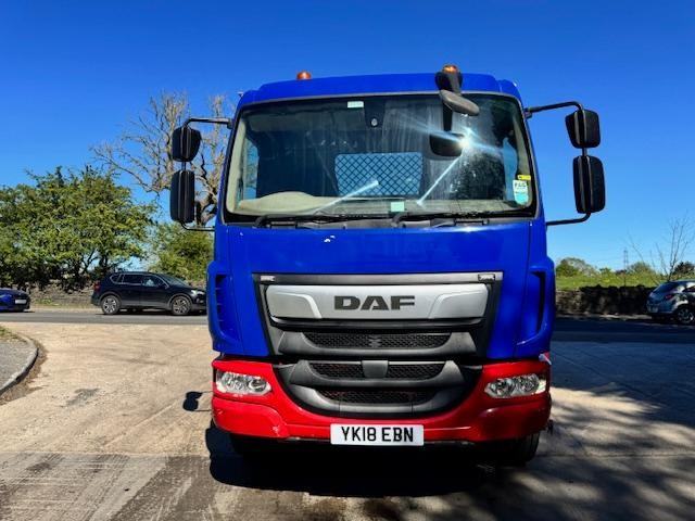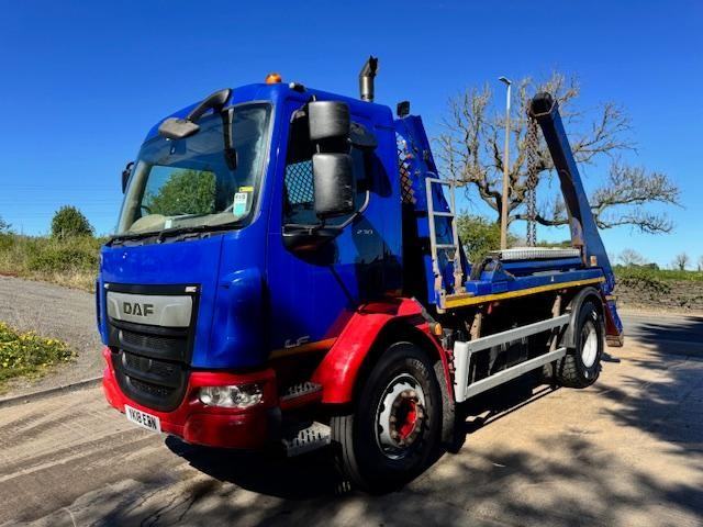 2018 18 DAF LF 230 EURO 6 HYVA extending arm skip loader, up right exhaust, beacons, work lights, manual 6 speed, cruise, lane assist, diff lock, reverse camera, central locking, air seat, electric windows/mirrors, phone, 1 owner, £17,950 + VAT (YK18 EBN)