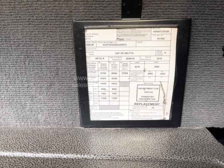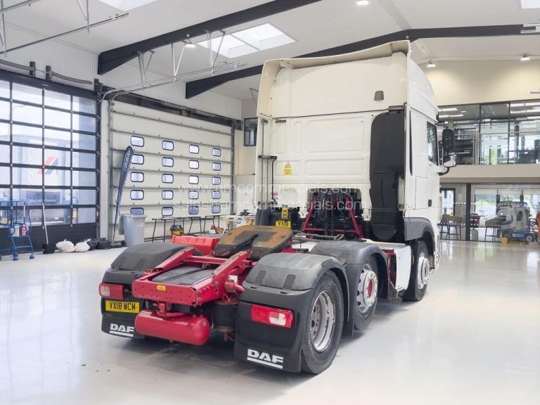 2018 (18) DAF XF 480 SuperSpace. Euro 6, 6X2 Midlift, Automatic Gearbox, Engine Brake, Fixed 5th Wheel, Fog Lights, Skylights, Visor, Gardner Denver HydraPak, Rear Mounted Batteries, Walkovers, Twin Bunk, 841k kms.