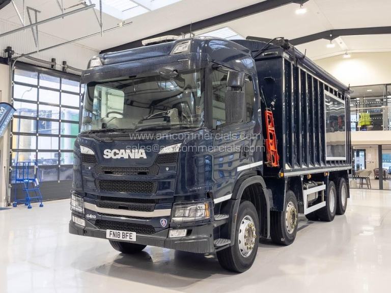 2018 (18) Scania G410 Bulk Tipper, 40 cu yd, 8X4, Manual Gearbox, Side Mounted Batteries, Binotto Ram, Vertical Exhaust, Alloy Body, Electric Easy Sheet, Tail Gate, Access Ladders, VPG Weighing System, Rear Cab Window, Side Guards, Sun Visor, Beacon Bar, Good Condition, Choice Available, MOT 31st August 2026, 639K KMS, Finance Available Subject to Status.