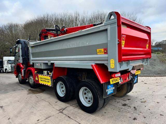 2018 18 VOLVO FMX 420 Euro 6 8X4 Thompson steel tipper, Epsilon M125L crane & grab, camera system, sensor system, Kelsa top bar, spots, beacons, Bak bar, air horns, upright exhaust, sun visor, manual 12 speed, cruise, engine brake, central locking, heated air seat, air con, electric windows/mirrors, sun roof, touch screen media system, £64,950 + VAT