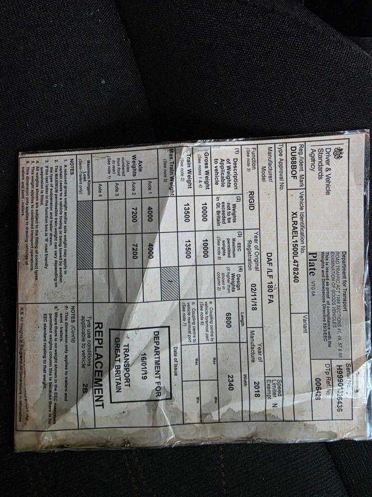 2018 Daf LF180 4x2 steel tipper, 10 ton gross, manual gearbox, 3 seats, tar chutes, tool box (2 compartments), hand basin, working lights, beacons, weigher, camera system, air compressor, only 100806kkms, 1 year mot, tidy