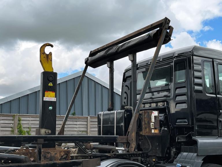 The Hyva hook loader system ensures quick and secure loading and unloading operations, making it suitable for waste management, construction, and logistics applications.