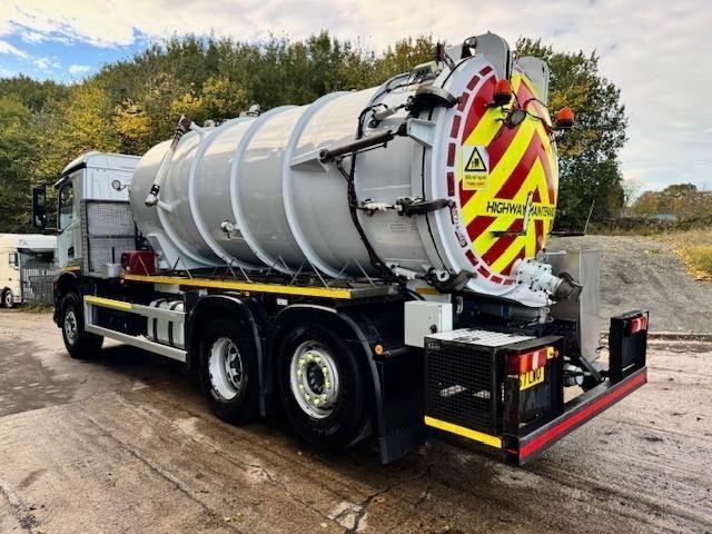 2018 MERCEDES AROCS 2533 EURO 6 6x2 rear lift/steer, VJ Engineering 13,600lts vacuum tanker, Jurop RV360 HDR vac pump, full hydraulic rear door, air controlled outlet valve, Gardner Denver hydro pack, pipe racks, stainless lockers, work lights, beacons, upright exhaust, camera system, sun visor, Auto, adaptive cruise, diff lock, hill assist, lane assist, central locking, air seat, air con, media system, sun roof, electric windows/mirrors, ex water board, £49,950 + VAT (FN67 LWO)
