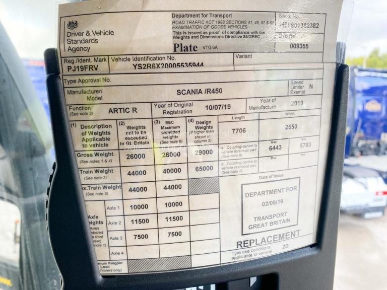 Posting for 5+ years2019 (19) SCANIA R450 CRANE-MOUNTED 6X2 TAG WITH HIAB CRANE