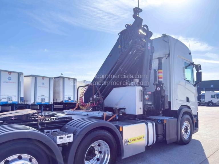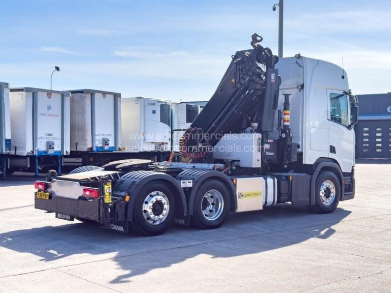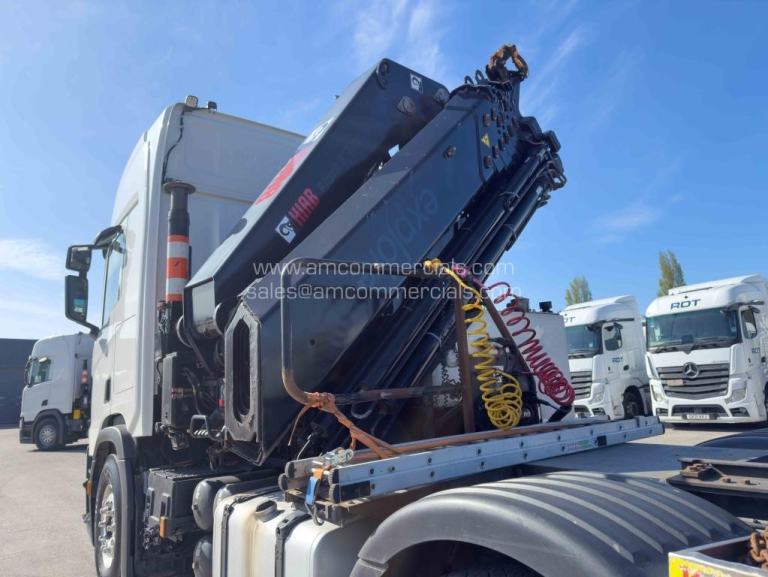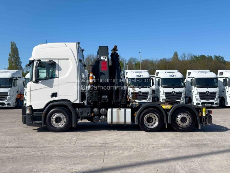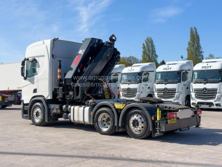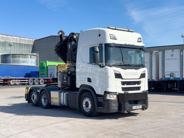 2019 (69) Scania R450 Highline Crane-Mounted Tractor Unit. HIAB X-HIPRO 658 EP-6 Crane and Wireless Remote control, 6x2 Tag Axle, 2-Pedal Opticruise, 5-Point Stabilising Legs, 3.8M Wheelbase, Sliding Fifth Wheel, New Alcoa Dura-Bright Alloy Wheels, 400L Fuel Capacity, Beacons, Infotainment, CB Radio, Leather Seats, Fridge, Single Bunk, Rear Wall Lockers, 502k kms, Immaculate Truck, 12 Month MOT Included. Finance Available subject to status.