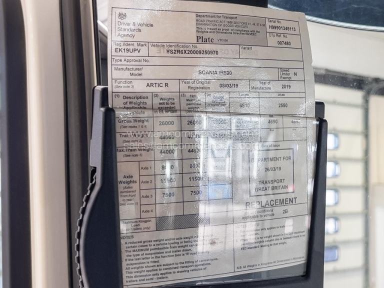 2019 (19) Scania R500 XT High Sleeper Cab, 6X2 Tag, Automatic Gearbox, Sliding Fifth Wheel, Side Mounted Batteries, Top Right Exhaust, 400L Fuel Capacity, Sun visor, Beacon Bar, Air Horns, Single Bunk, Rear Wall Storage Lockers, Leather Seats, Scania Infotainment Premium, Fridge, Great Condition, Choice Available, 414K KMS, Finance Available Subject to Status.