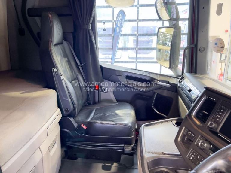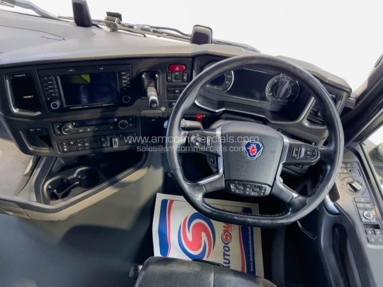 2019 (69) Scania S580 V8 Highline. 6X2 Midlift, Automatic Gearbox, Front & Rear Air Suspension, Alloy Wheels, Rear Mounted Batteries,Sliding Fifth Wheel, Catwalk, Chrome Airbar with Storage, Rear Working Lights, HiBar with Spots & Beacons, Skylights, Mid Lights, Fog Lights, Side Skirts, Leather Seats, Leather Steering Wheel, Coffee Machine, Twin Bunk, Fridge, Microwave, Scania Infotainment Premium, 4M Wheelbase, 711K KMS, MOT 31 August 2026, Great Condition, Finance Available Subject To Status.