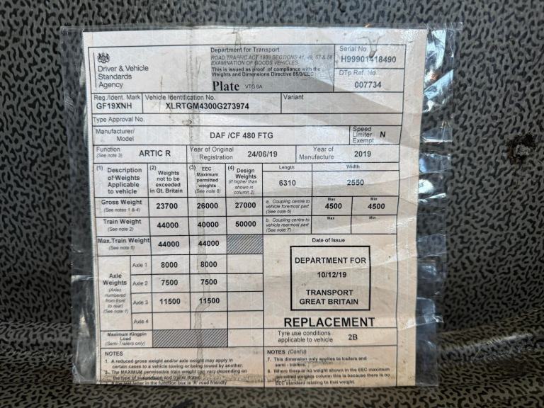 Posting for 14+ years2019 DAF CF 480 6X2 TRACTOR UNIT