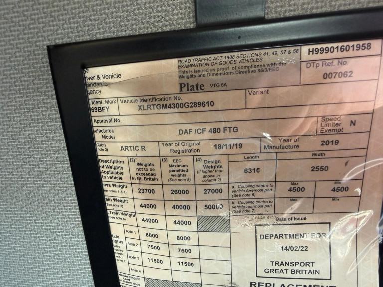 Posting for 14+ years2019 DAF CF 480 6X2 TRACTOR UNIT