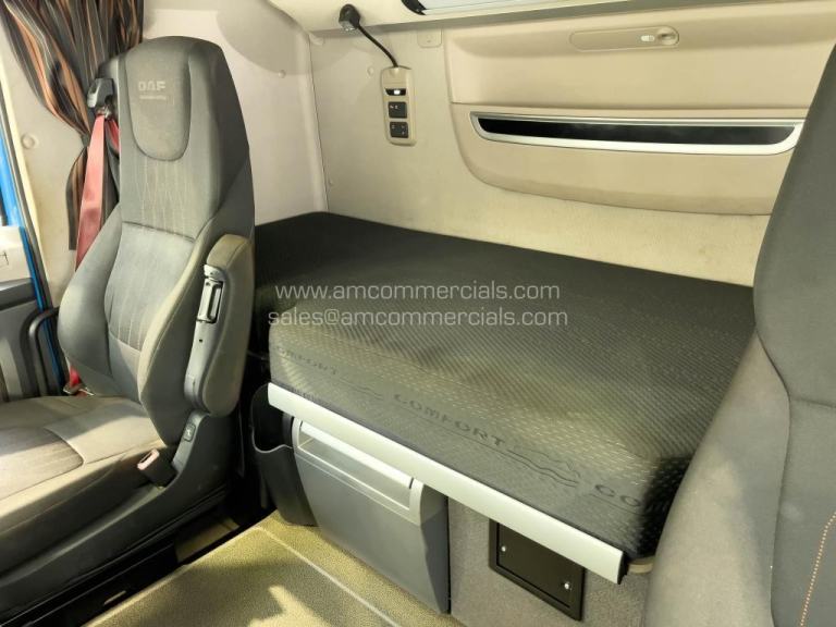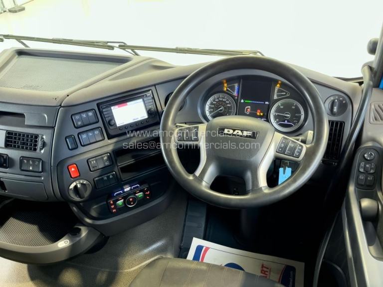 2020 (20) DAF XF 480 SpaceCab. Euro 6, 6X2 Tag Axle, Automatic Gearbox, PTO Prep, Engine Brake, Sliding Fifth Wheel, Fog Lights, Skylights, Visor, Rear Mounted Batteries, Catwalk, High Sleeper Cab, Twin Bunk, Fridge, Stereo/AUX/USB/Bluetooth, 353K KMS. MOT 30 June 2026. Finance Available subject to status.