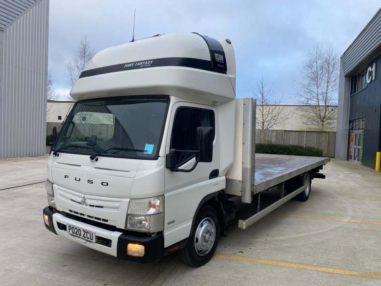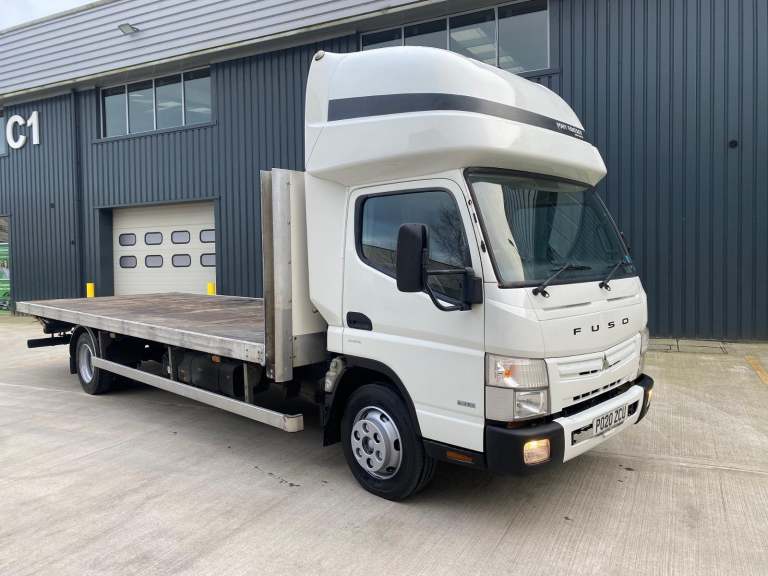 2020/20 MITSUBISHI CANTER FUSO 3.0 DIESEL 7.5 TONNE FLATBED WITH SLEEPER POD. AUTOMATIC TRNASMISSION. FITTED TUCKUDER TAIL LIFT. DIRECT FROM OUR OWN CONTRACT HIRE FLEET, RECENTLY CONVERTED FLAT BED. 1 LOCAL OWNER AND OPERATOR FROM NEW, EXCELLENT ALLROUND CONDTION. FULLY CONTRACT MAINTAINED FROM NEW, FULL AN COMPREHENSIVE SERVICE HISTORY. FITTED WITH THE PONY HATCHER ABOVE CAB SLEEPER POD. MASSIVE PAYLOAD OF 3850 KGS, IDEAL FOR SCAFFOLDING USE. A FURTHER CHOICE OF 18 / 19 PLATE VEHICLES AVAILABLE FROM THE SAME SOURCE. PLEASE CONTACT STEVE FOR FURTHER DETAILS OR TO VIEW £9499+VAT