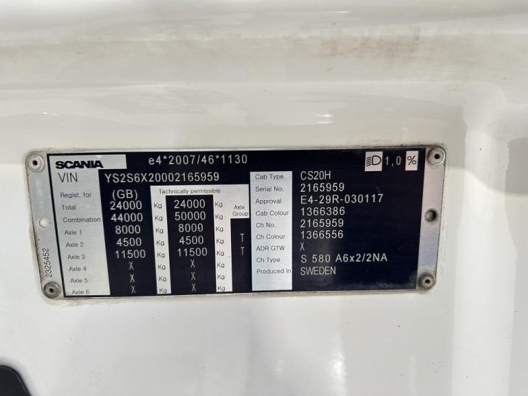 Posting for 5+ years2020 (20) SCANIA S580 6X2 LIGHTWEIGHT MIDLIFT