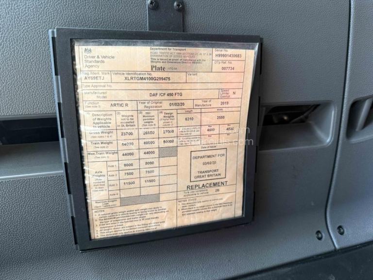 2020 (69) DAF CF 450 Classic Space Cab, 6X2 Midlift Axle, Automatic Gearbox, Engine Brake, Sliding Fifth Wheel, Rear Mounted Batteries, Sun Visor, Catwalk, Sleeper Cab, Single Bunk, 508k kms. Great Condition. Choice Available.