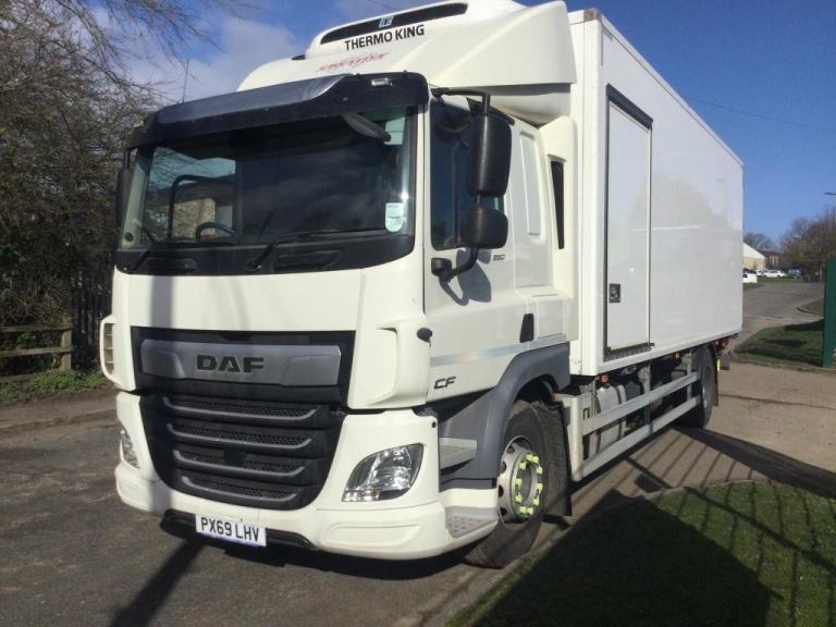 REF TG 3841 REG PX69LHV DAF CF 260 4X2 SLEEPER CAB 300.000 KMS WARRANTED MANUAL GEARBOX ALL ROUND CAMERA SYSTEM AIR CON 18 TONNE GROSS FITTED WITH 24 FOOT LONG SOLOMON FRIDGE BODY THERMO KING T800 FRIDGE UNIT OVERNIGHT STAAND BY REAR AND SIDE LOADING BARN DOORS TUCK AWAY TAIL LIFT COMES WITH 12 MONTHS MOT AS NEW CONDITION ONE COMPANY OWNER NO VAT IF GOING FOR EXPORT REF TG 3841