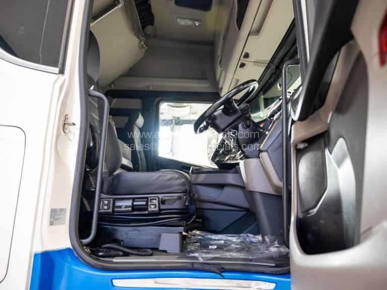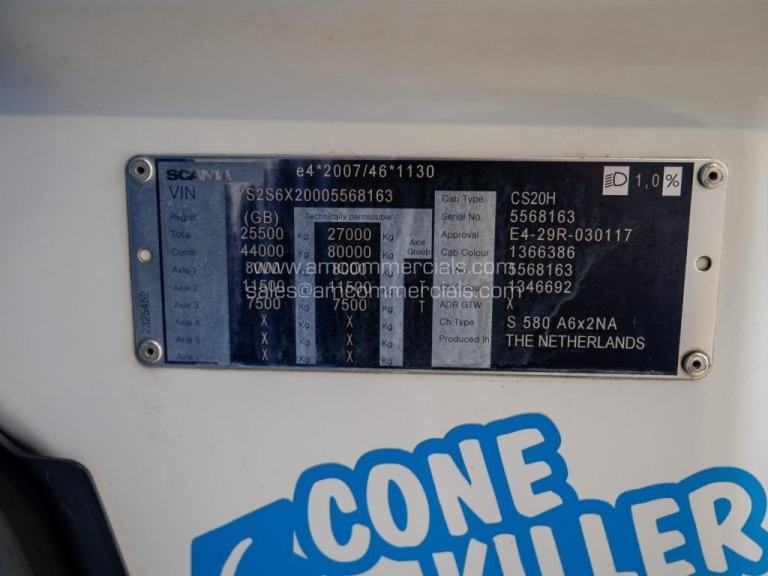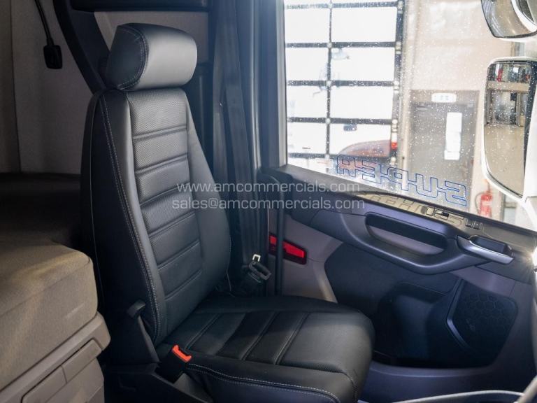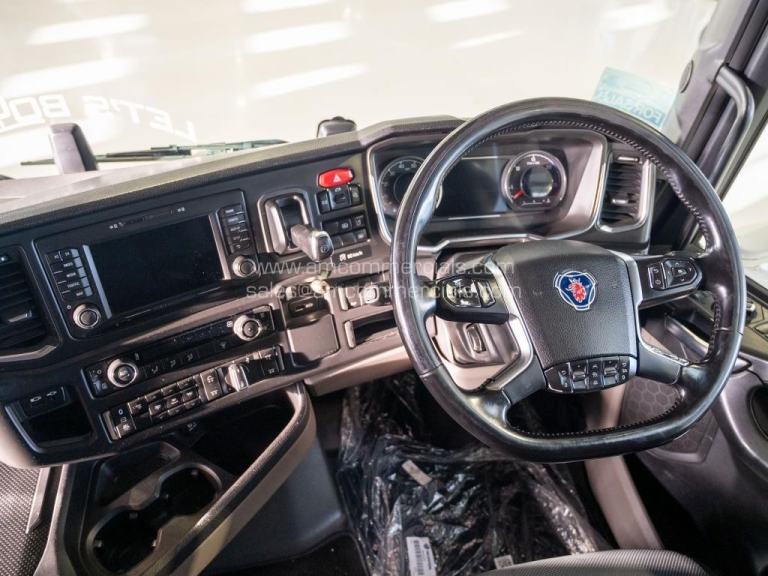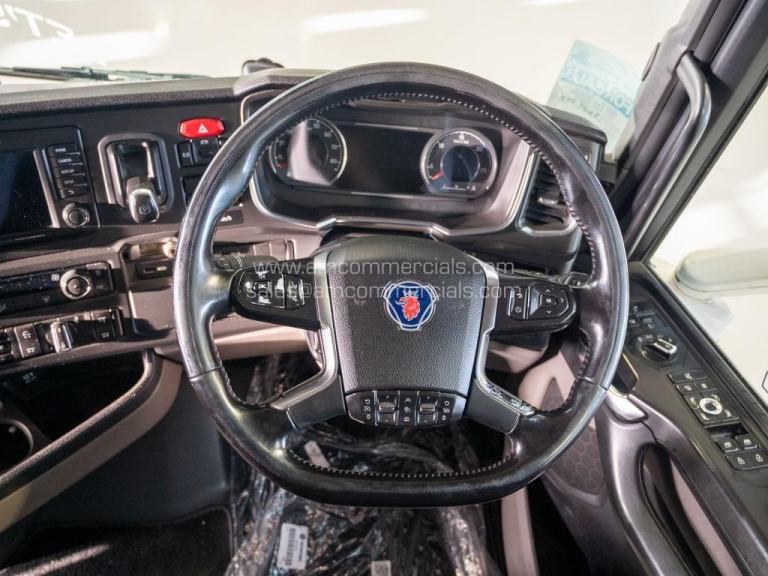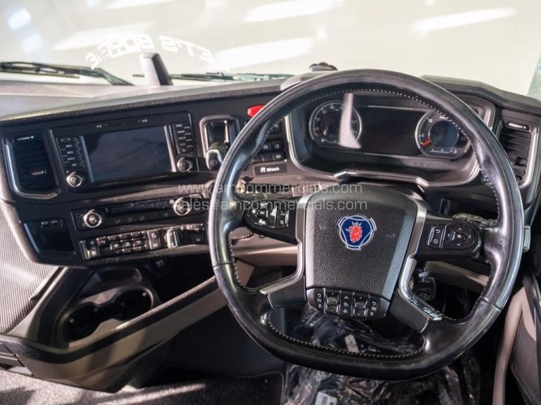2020 (69) Scania S580 V8 Highline. 6X2 Tag Axle, 2-Pedal Opticruise Gearbox, Fixed Fifth Wheel, 5-Stage Retarder, Alcoa Alloy Wheels, Rear-Mounted Batteries, Full Chassis In-Fills, Dutch Headboard, Marker Lights, Air Horns, Grill Spots, Deep Visor, Beacons, BackBar with LEDs & Work Lights, Corner Deflectors, Colour-Coded, Twin Bunk, Reupholstered Leather Seats, Fridge, Infotainment Premium with SatNav, Leather Steering Wheel, 610K Miles. In Excellent Condition. Finance Available subject to status.