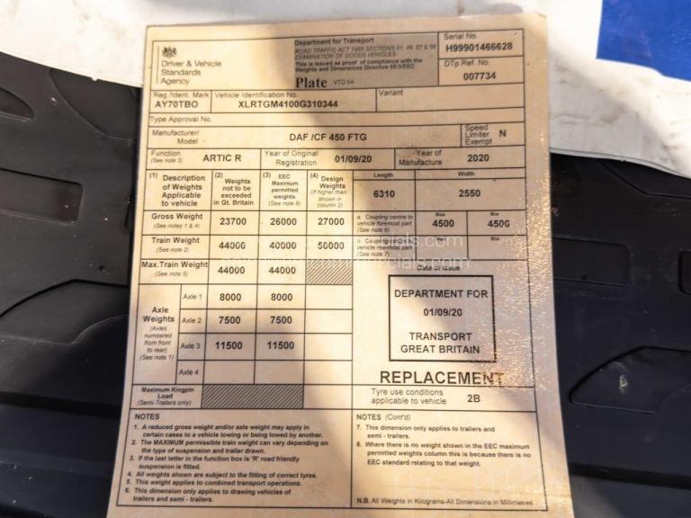 2020 (70) DAF CF 450 Classic Space Cab, 6X2 Midlift Axle, Automatic Gearbox, Engine Brake, Sliding Fifth Wheel, Rear Mounted Batteries, Sun Visor, Catwalk, Sleeper Cab, Single Bunk, 517K KMS. Great Condition. Choice Available.