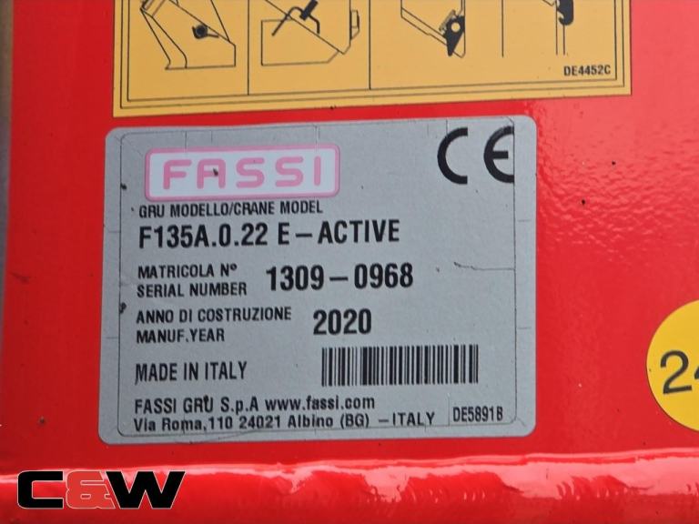 ANCILLARY EQUIPMENT: Fassi F135A.0.22 Front mounted Carne/ Remote Operated / 2 Extensions / Front End Outriggers