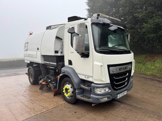 2020 70 DAF LF 230 EURO 6 15T Stocks VT650 dual sweep, pressure wash, hand lance, gully arm, Iveco turbo donkey, upright exhaust, work lights, beacons, camera system, back watch, sun visor, Manual 8 speed, adaptive cruise, lane assist, diff lock, central locking, air seat, air con, electric windows/mirrors, £39,950 + VAT (CE70 BZY)