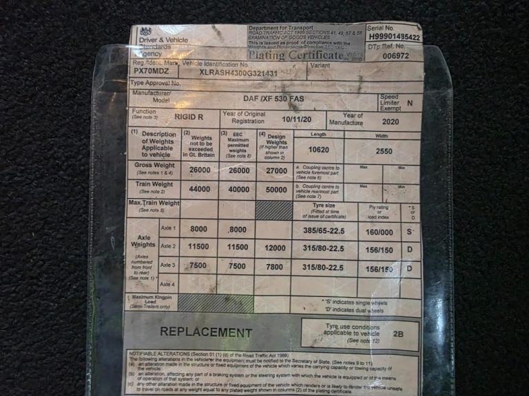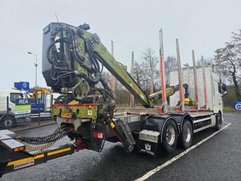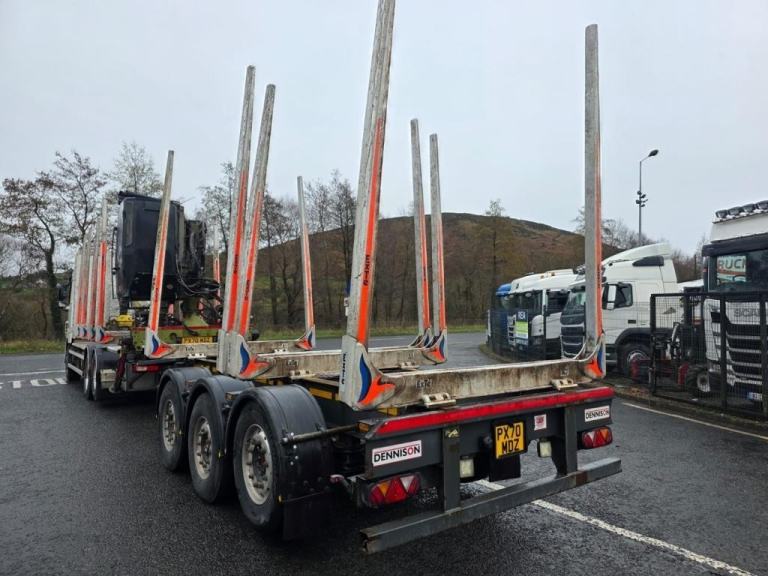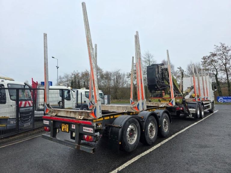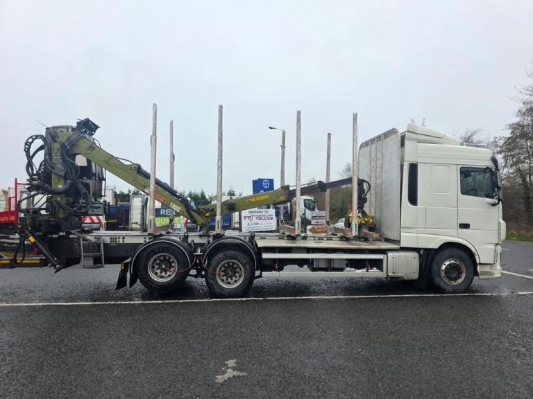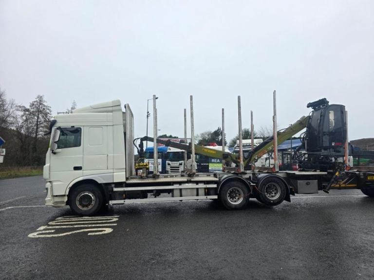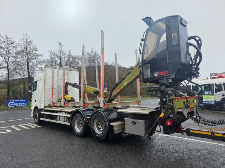 2020 DAF XF 530 Space cab, 6X2 Twin Lift axle, log truck and Dennision Drag Trailer, Rear lift Axle, C/W Log lift F108ST96 Cab Crane, Big Foot Tyre Inflation system, 16 Speed Manual Gearbox, Microwave, Fridge, Double Sleeper, Front Rear Air suspension, 506181kms, MOT 30/11/2026