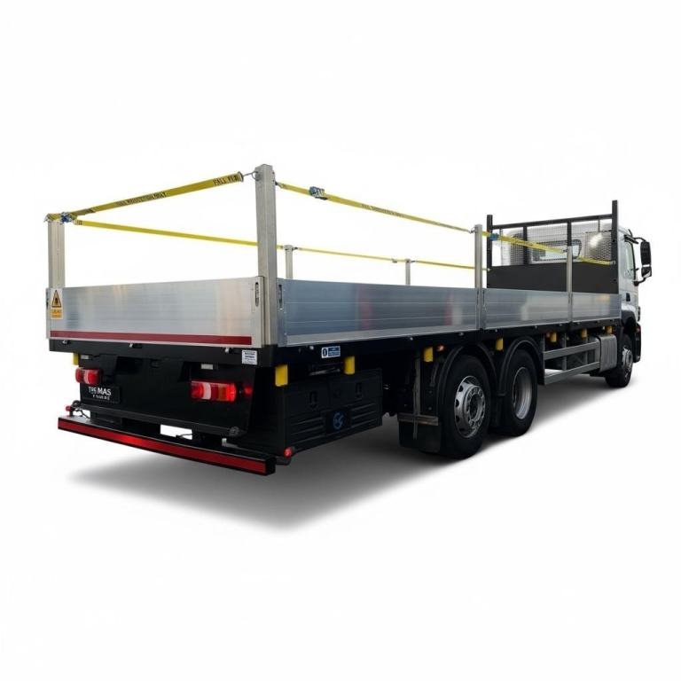 6X2 Rearlift and Steer Axle, 9M Triple Alloy Dropside Heavey Duty Steel Body, Hardwood Floor, Heavy Duty Steel Bulkhead, x14 Pole Holes, Lashing Rings, x2 1.2M Locker Boxes, Air Suspension, Mirrorcam System, Brigade Rear Camera System, Tested till April 2026 with only 217,000 klms from new