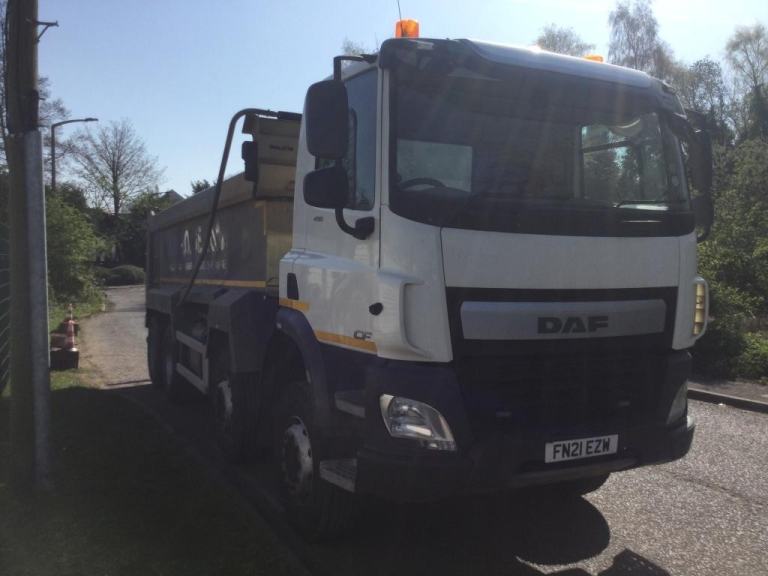 REF TG 3862 REG FN21EZW DAF CF 450 EURO 6 8X4 DAY CAB 400.000 KMS WARRANTED 32 TONNE GROSS ALL ROUND CAMERA SYSTEM AIR CON ON BOARD WEIGHER JUST HAD NEW TYRES ALL WAY ROUND DOUBLE DRIVE SPRING SUSPENSION FITTED WITH WILCOX TIPPING RAM EASY SHEET FEBRUARY 2027 MOT BRAND NEW CONDITION ONE COMPANY OWNER NO VAT IF GOING FOR EXPORT REF TG 3862