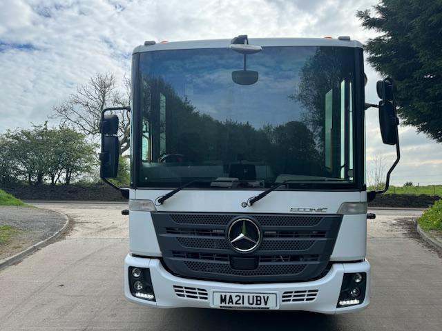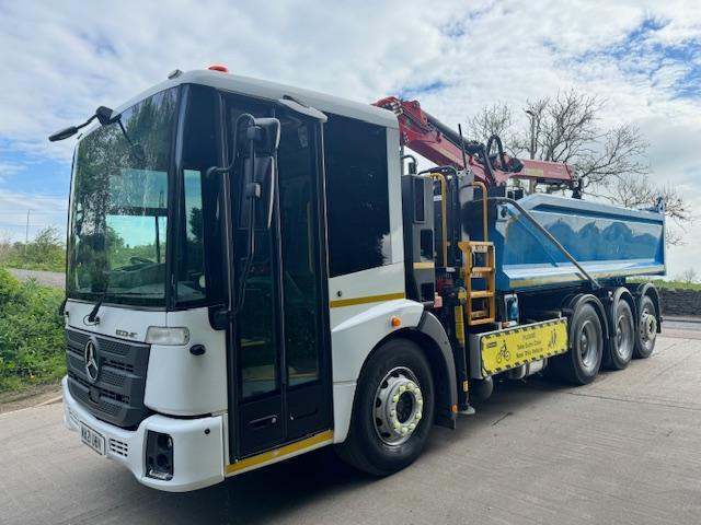 2021 21 MERCEDES ECONIC 3235 Euro 6 crew cab 8x4 tri-dem rear lift/steer, full air suspension, Epsilon M135L HPS remote control crane & grab, c/w block grab attachment, MTE steel tipper, sheet, tow bar, tool box, hand wash, beacons, work lights, upright exhaust, camera system, sensor system, audible indication, side guards, auto, adaptive cruise, hill assist, diff lock, central locking, air seat, sun roof, aux heating, electric windows/mirrors, 1 owner 11,000kms £59,950 + vat