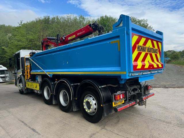Posting for 9+ years2021 21 Mercedes ECONIC 3235 8x4 steel tipper Epsilon remote crane and grab
