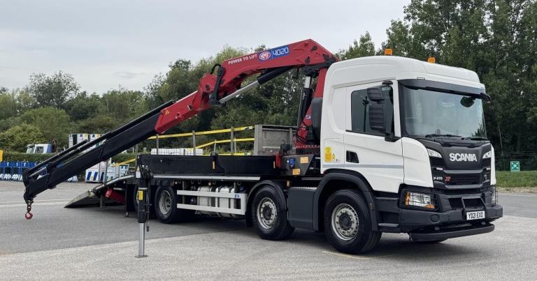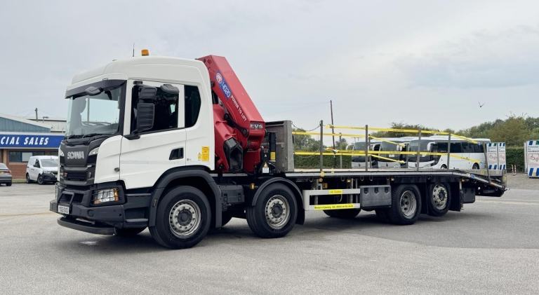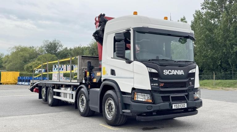 Posting for 6+ years2021 21 Plate Euro 6, Scania P410XT 32t Cheesewedge Body HMF 4020 Crane