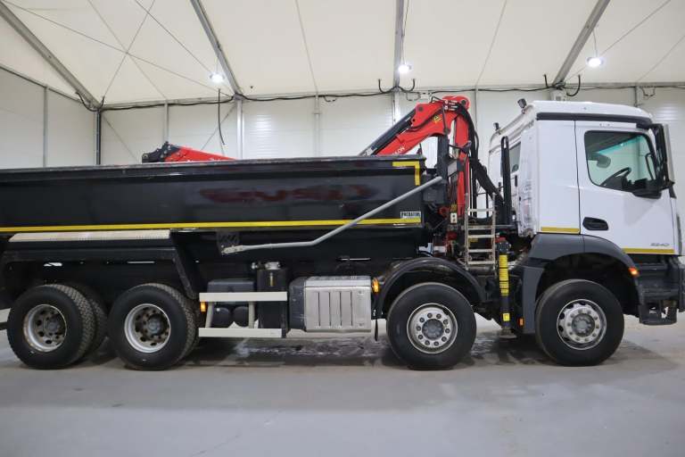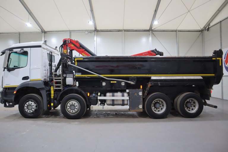 *Contact For Export Price* 83,000KMS & 12 Month Warranty! 2021 (21 PLATE) MERCEDES BENZ AROCS 3240 GRAB 8X4 EURO 6 TIPPER, DAY-CAB, STEEL BODY, PALFINGER EPSILON M125L CLASSIC CRANE W/ CLAM SHELL GRAB, UNDER FLOOR TIP GEAR, ROOF-MOUNTED BEACONS, MULTIMEDIA COCKPIT, KEYLESS IGNITION, CAMERA SYSTEM, LEAF SPRING SUSPENSION SYSTEM, HYDRAULIC STABILIZING LEGS, MOTORIZED LOAD SHEET, METAL MIRROR GUARDS, A/C, AIR DUSTER, RADIO/STEREO, 12 MONTHS WARRANTY INCLUDED!!