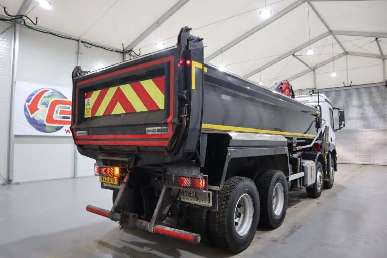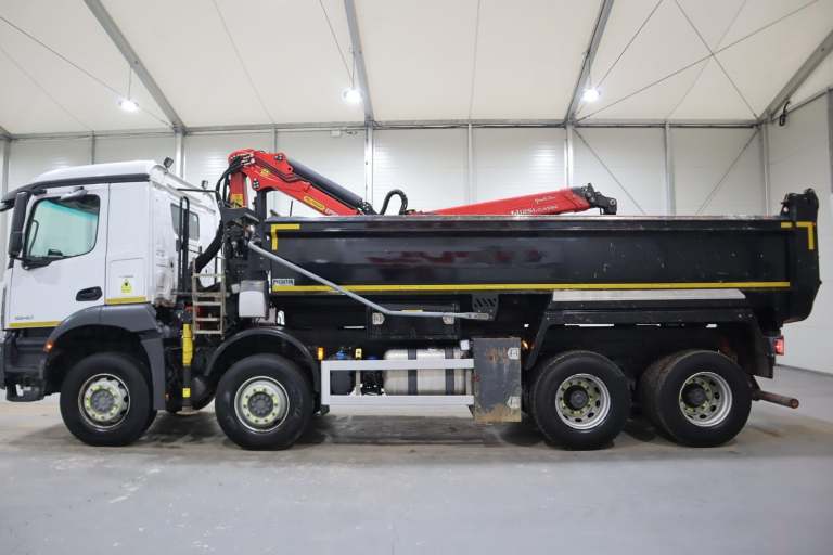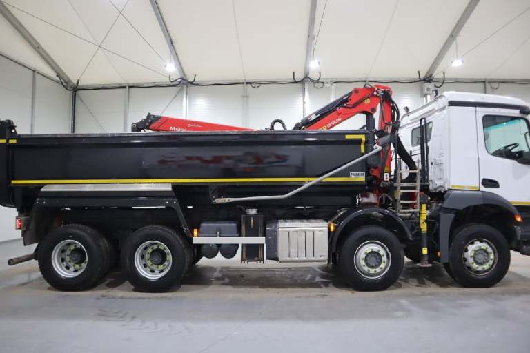 91,000KMS & 12 Month Warranty! 2021 (21 PLATE) MERCEDES BENZ AROCS 3240 GRAB 8X4 EURO 6 TIPPER, DAY-CAB, STEEL BODY, PALFINGER EPSILON M125L CLASSIC CRANE W/ CLAM SHELL GRAB, UNDER FLOOR TIP GEAR, ROOF-MOUNTED BEACONS, MULTIMEDIA COCKPIT, KEYLESS IGNITION, LEAF SPRING SUSPENSION SYSTEM, HYDRAULIC STABILIZING LEGS, MOTORIZED LOAD SHEET, METAL MIRROR GUARDS, A/C, AIR DUSTER, RADIO/STEREO, 12 MONTHS WARRANTY INCLUDED!!, PRICE IS POA